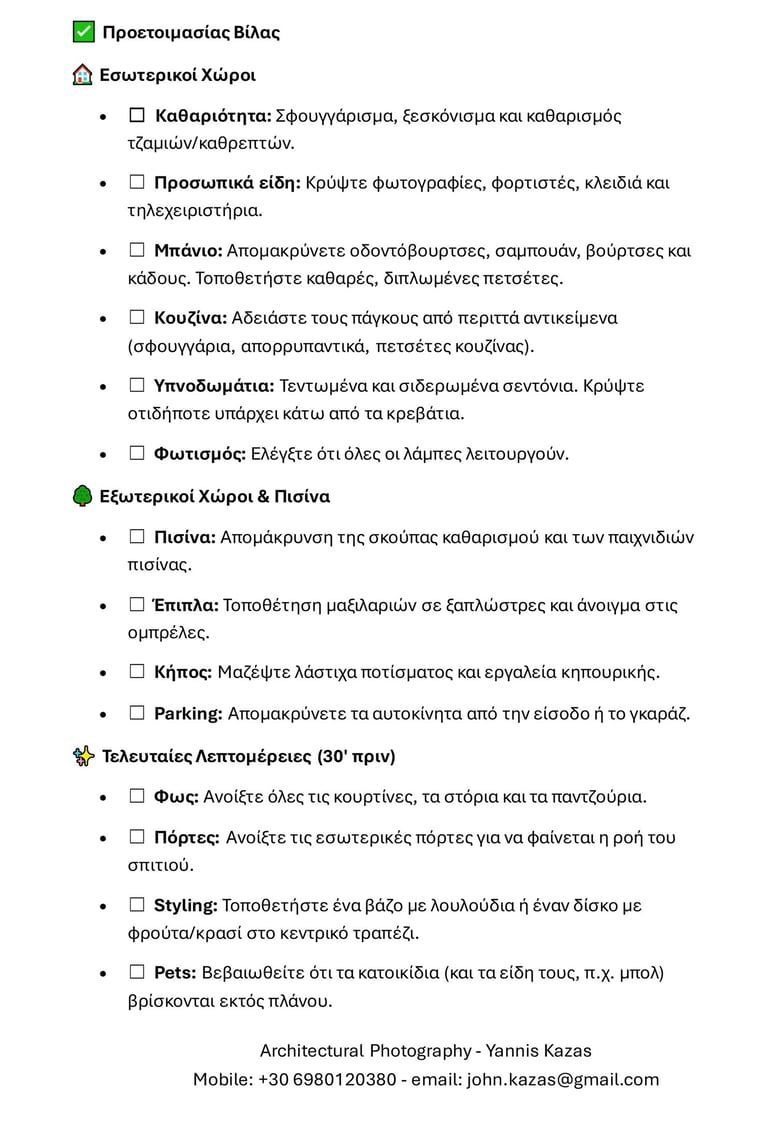 Προετοιμασία Βίλας & Διαμερίσματος: Checklist για επαγγελματική φωτογράφιση ακινήτων