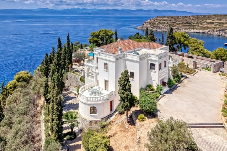 Φωτογράφιση παραθαλάσσιας έπαυλης με 2 ιδιωτικές παραλίες αξίας 22.000.000€ στις Σπέτσες.